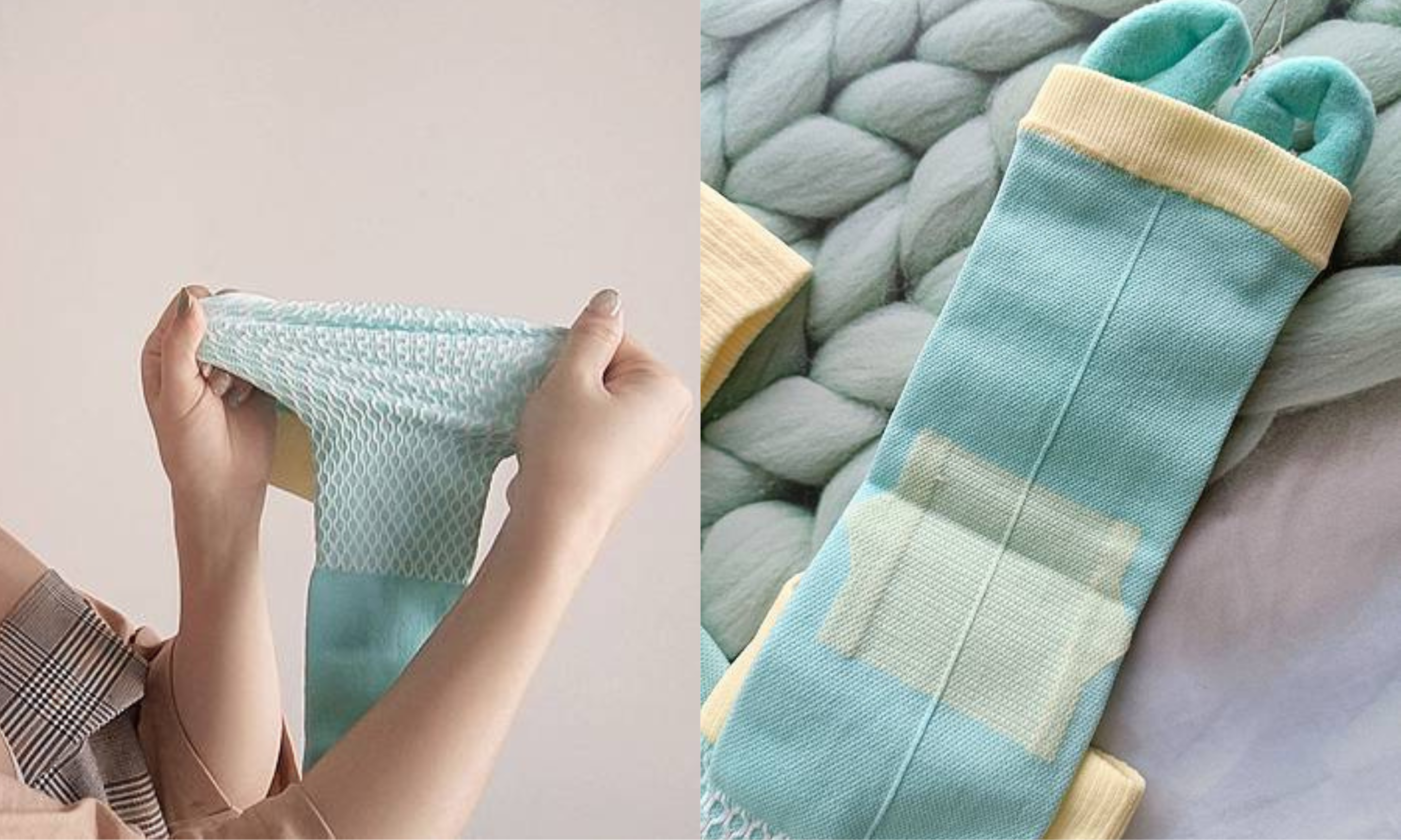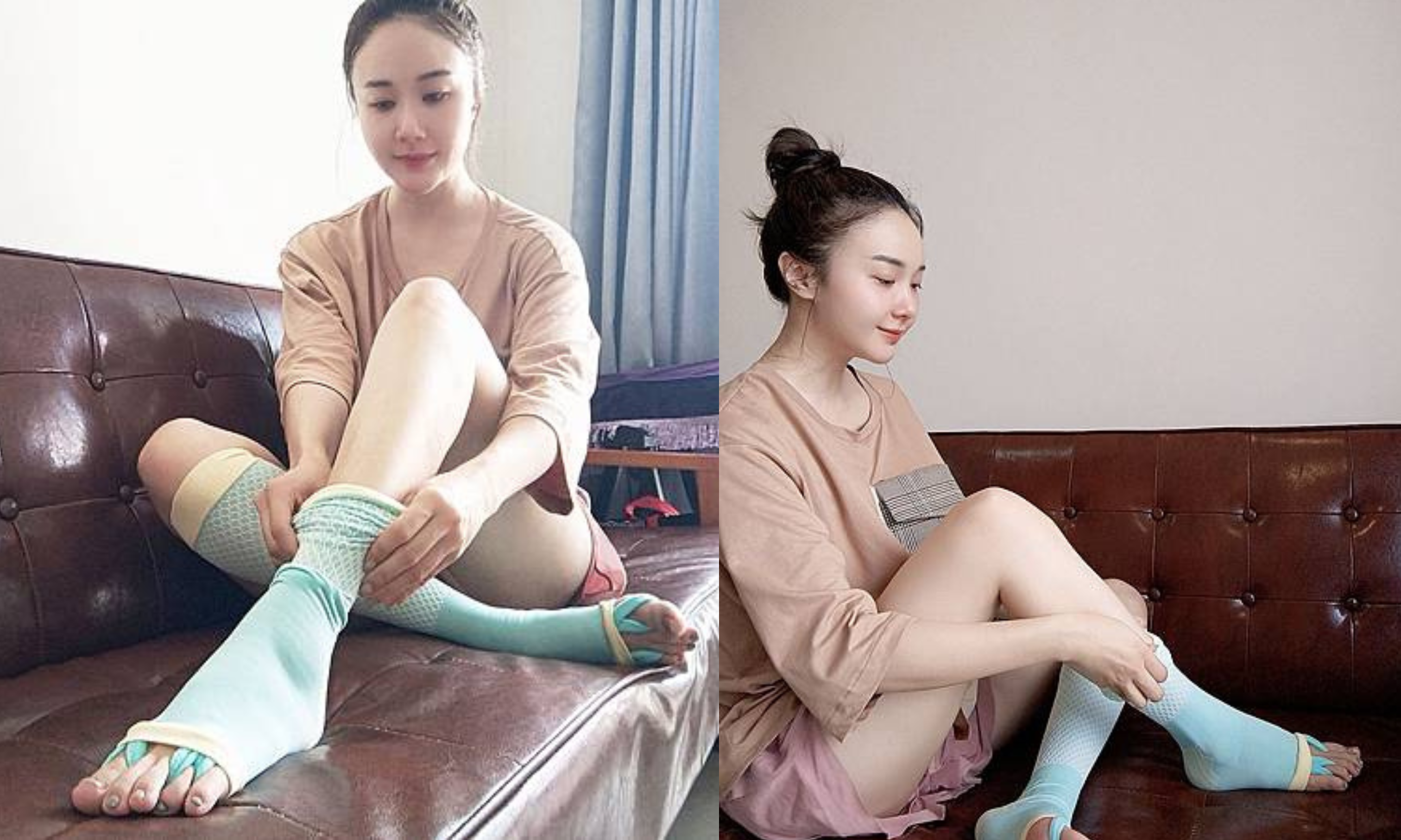 正盤襪專利體趾束環要分別套在大拇指和無名指上,所以大小也有一些差別,我們也能用來分辨左/右腳~