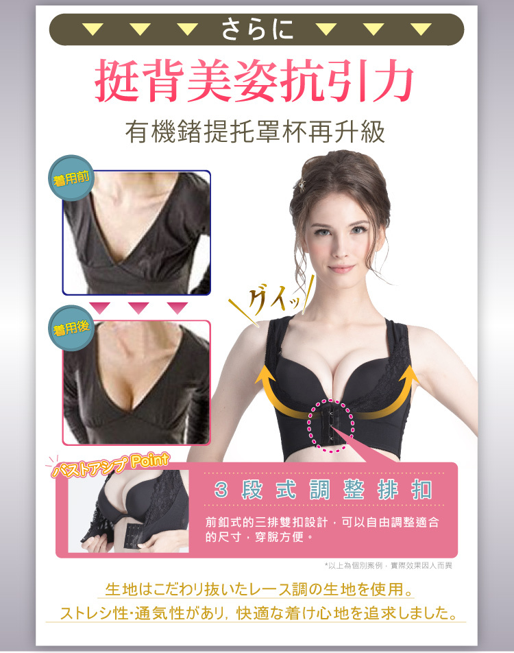 A:超爆女王使用醫療級加壓網紗,穿起來不悶熱透氣度佳,提托力道強唷!