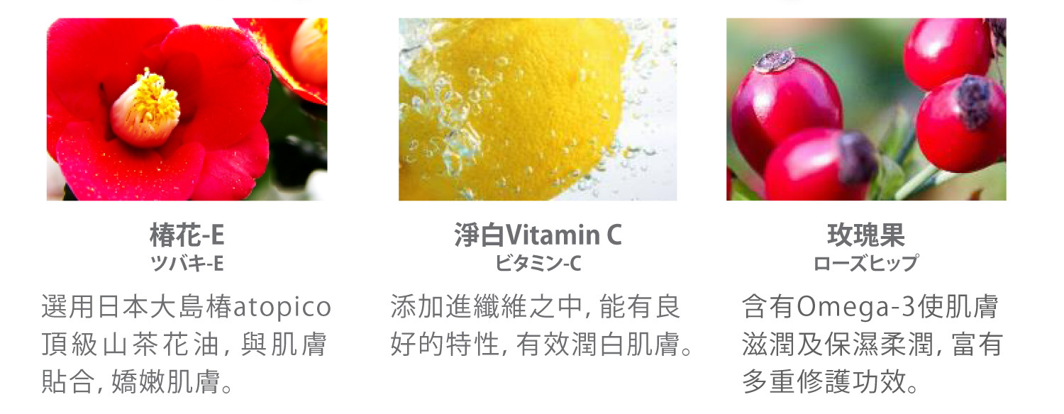 .小分子VitaminC-添加進纖維之中,能有良好的特性,並有效煥白美膚。