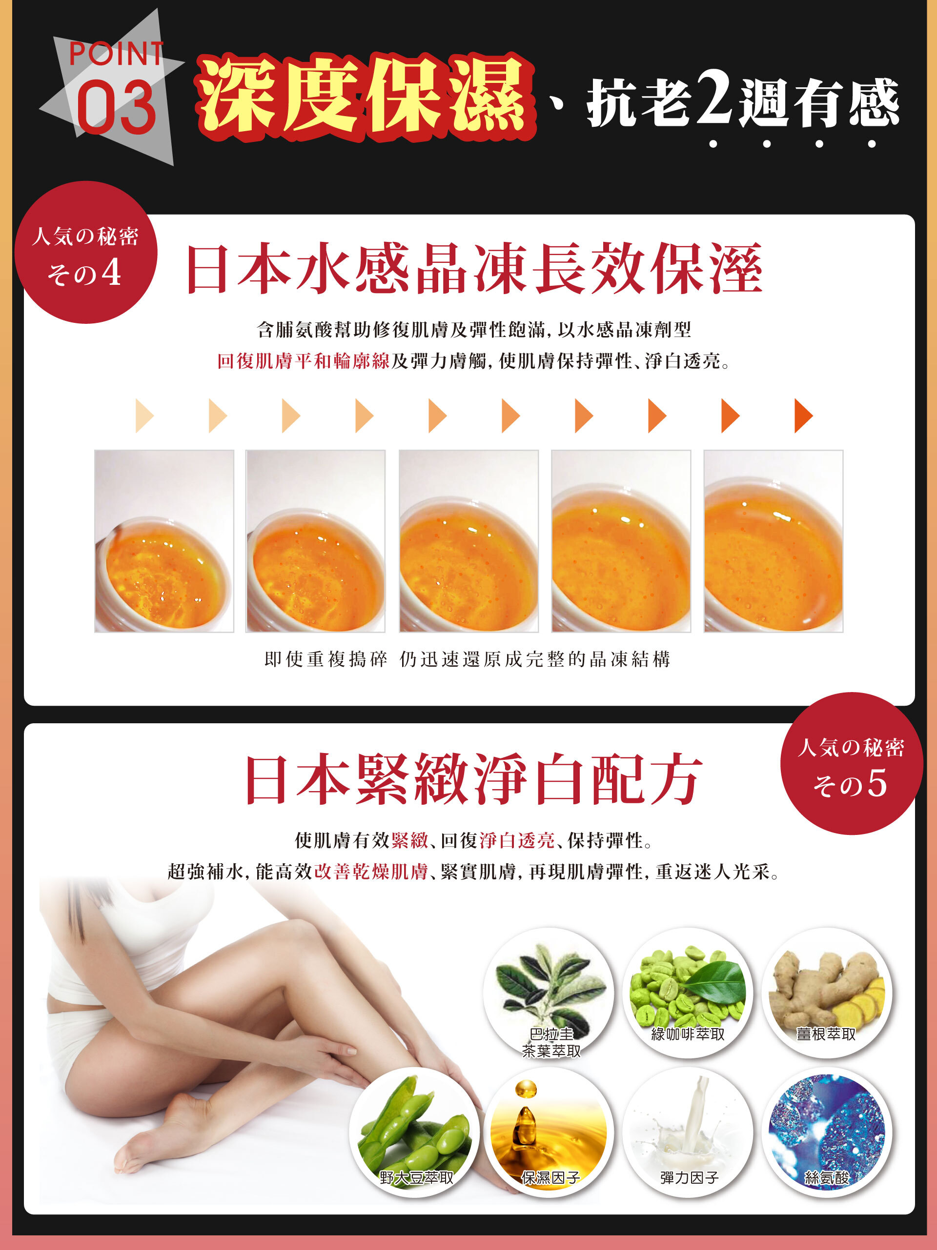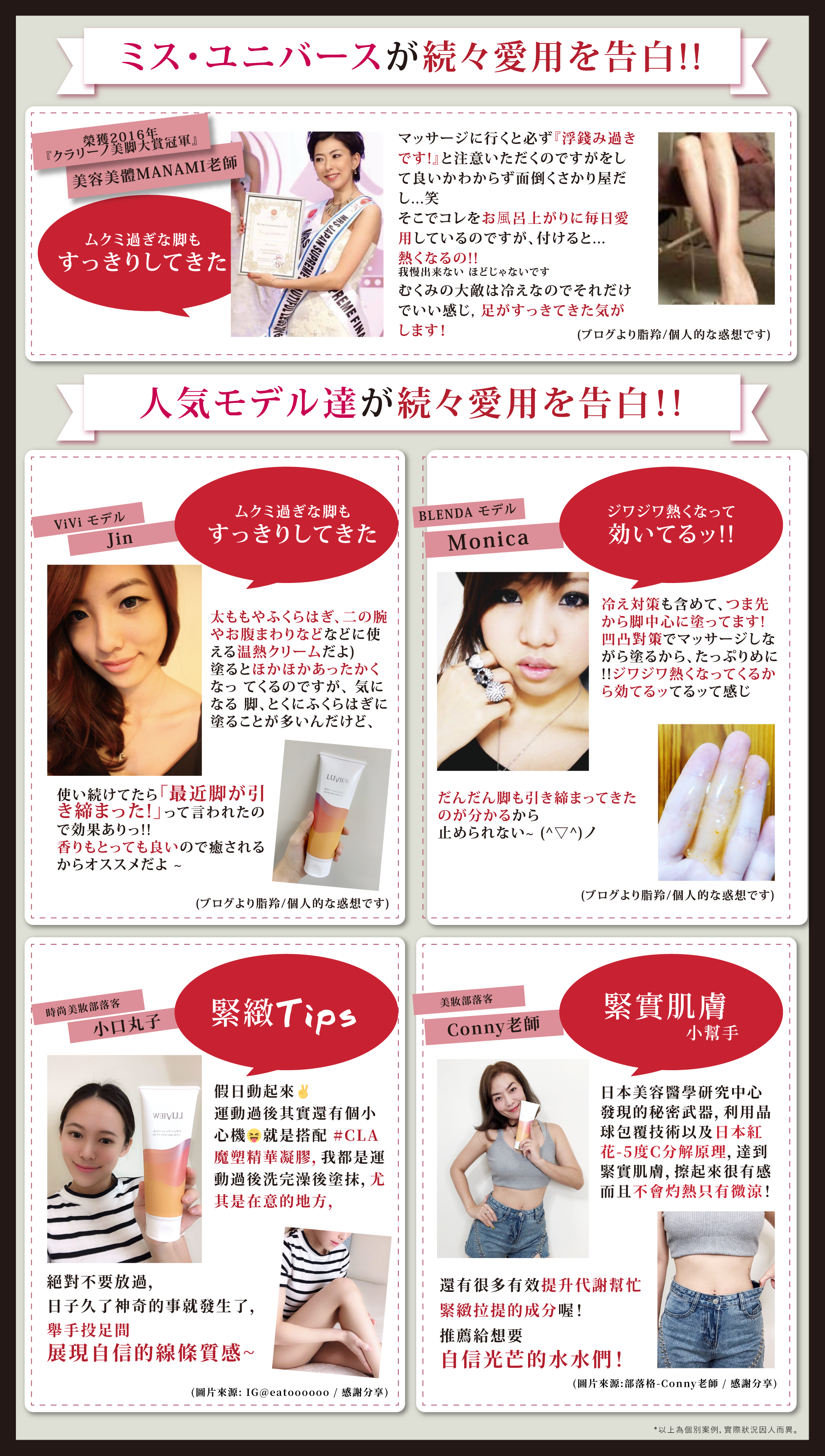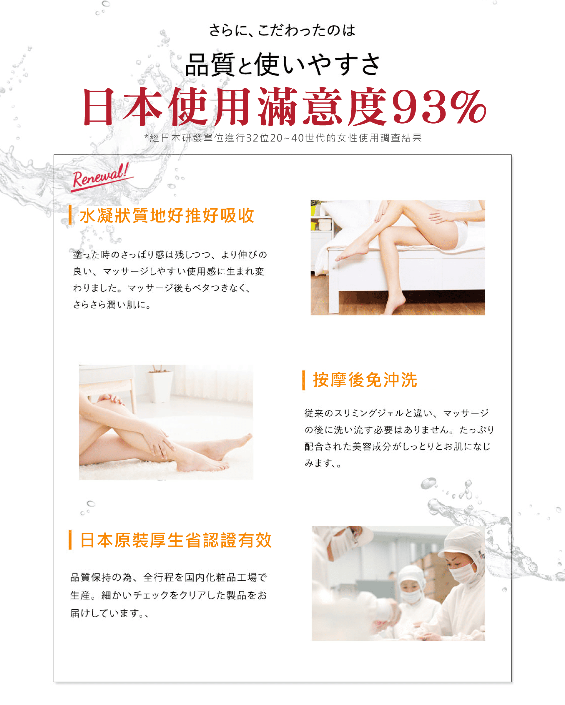 | 使用方式 | 每天使用1至2次,均勻塗抹於想雕塑部位,輕輕按壓至完全吸收為止。 |