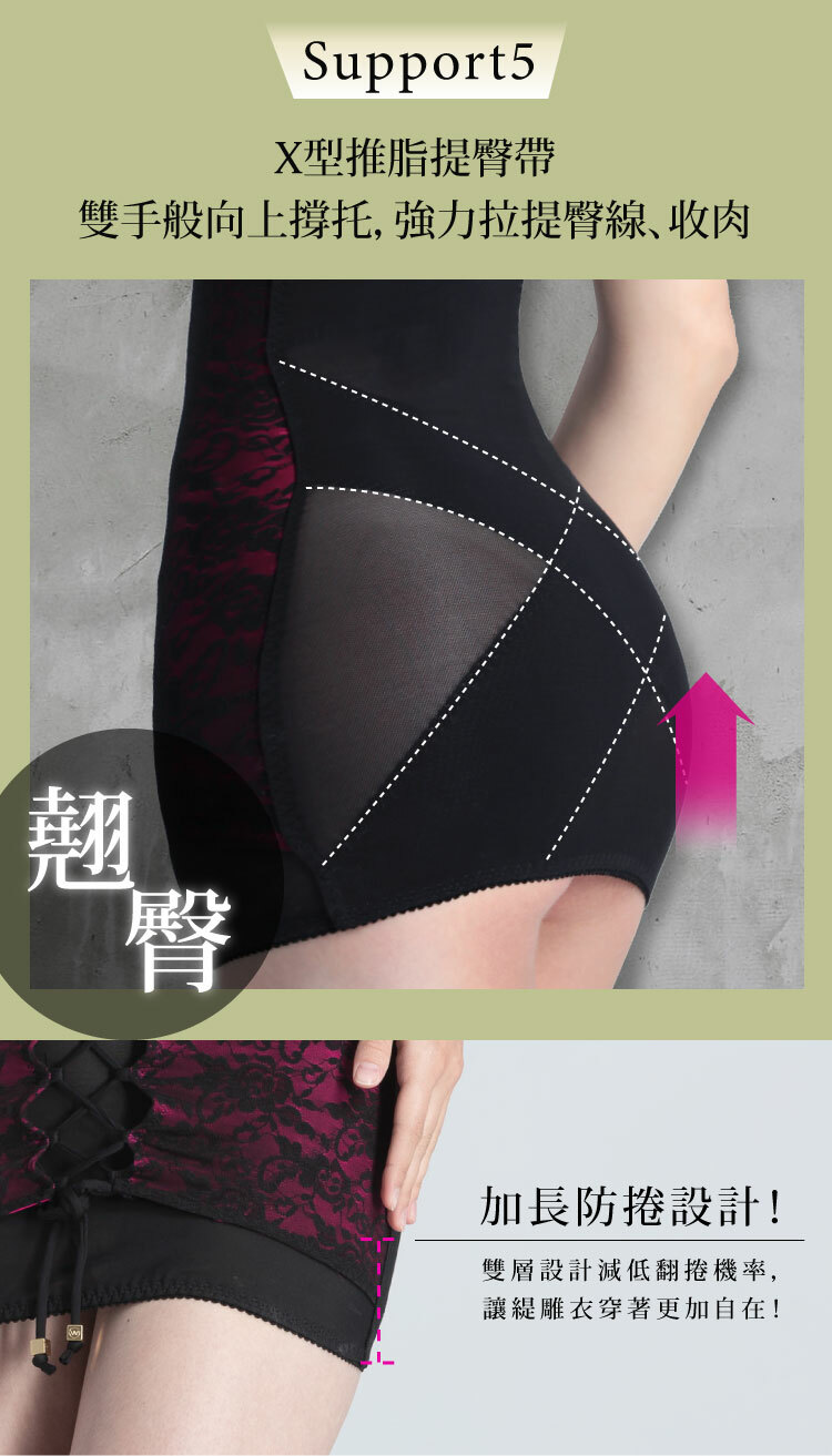 ✔ X型高D推脂提臀帶設計減低翻捲機率