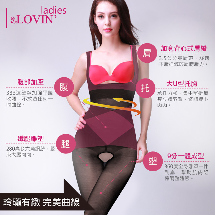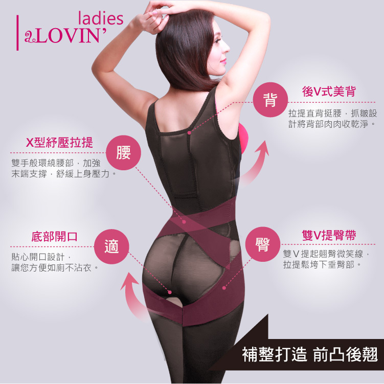 | 產品特色 | 打造名模S曲線身材就靠它,一體成形一件到底,再也不上捲,全身雕塑,六角網紗設計透氣舒適,跨下開口設計,上廁所也不用整件脫,剪裁縫線設計拉提直背收腰,穩定肉肉不亂跑。 |