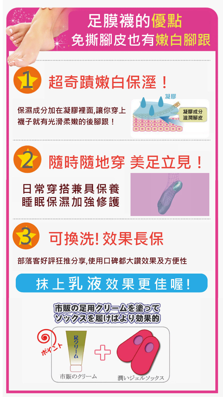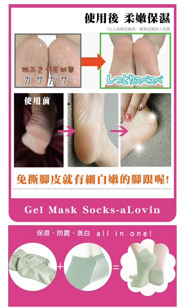 穿上就美足!柔嫩保濕神奇美足凝膠襪。