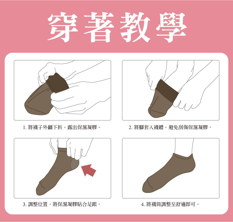 1. 將襪子外翻下折,露出保濕凝膠。