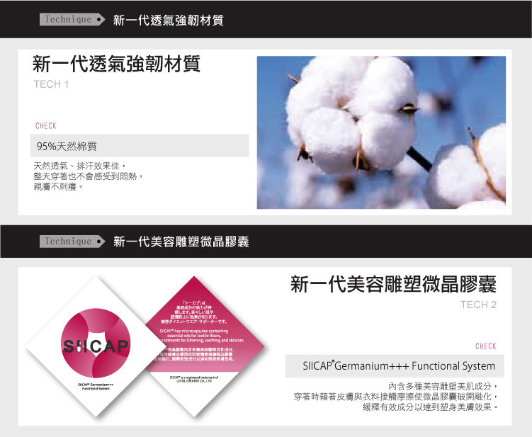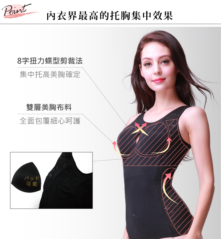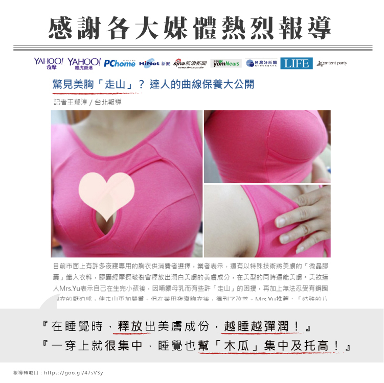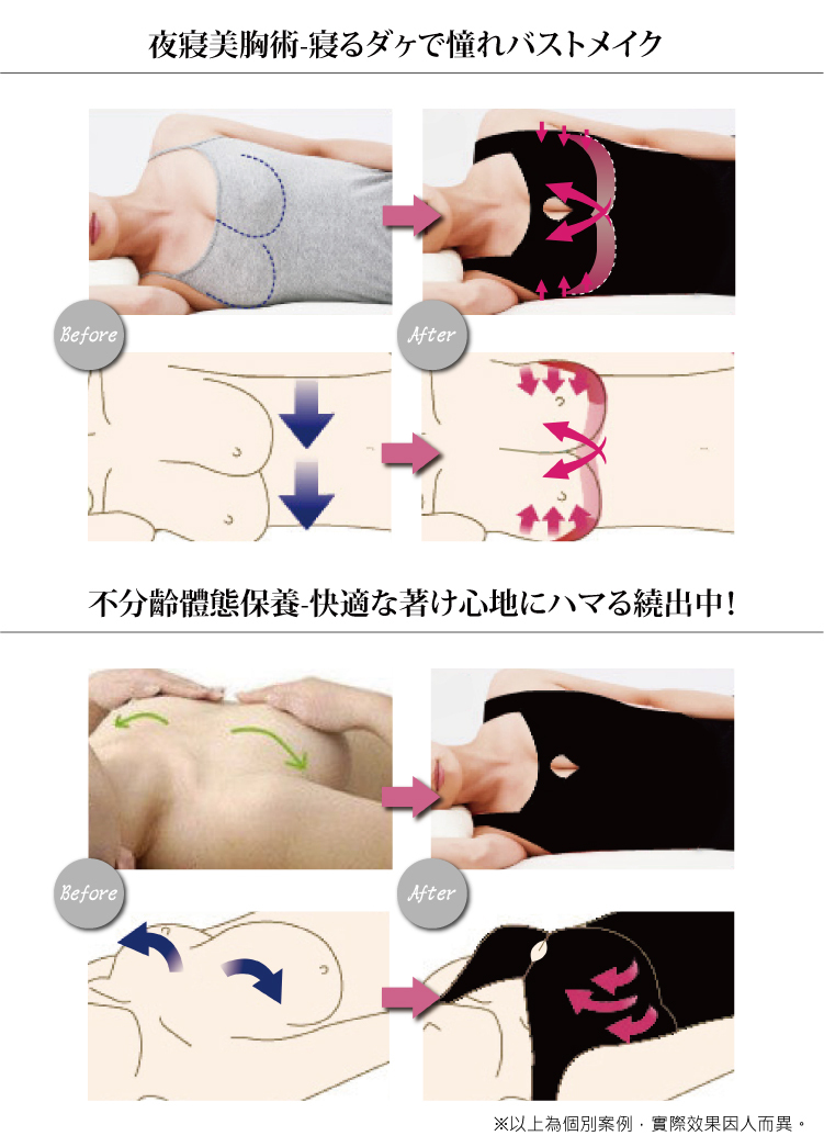 | 產品特色 | 全新升級!添加日本SIICAP微晶美胸膠囊添加x美胸+潤白+香氛,讓你越睡越彈潤!延伸性縮腰加壓,睡眠美胸+美體,8字扭力蝶型剪裁法,雙層包覆美胸,胸型更立體。親膚設計,加強彈力布,細膩親膚,吸濕、排汗透氣性佳,舒適塑形,適合長期著用。 |