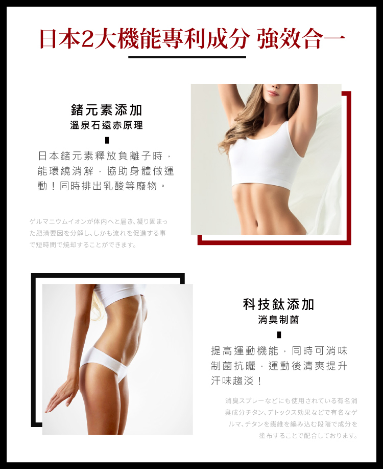 ✔鍺鈦元素添加,提升運動消卡效能