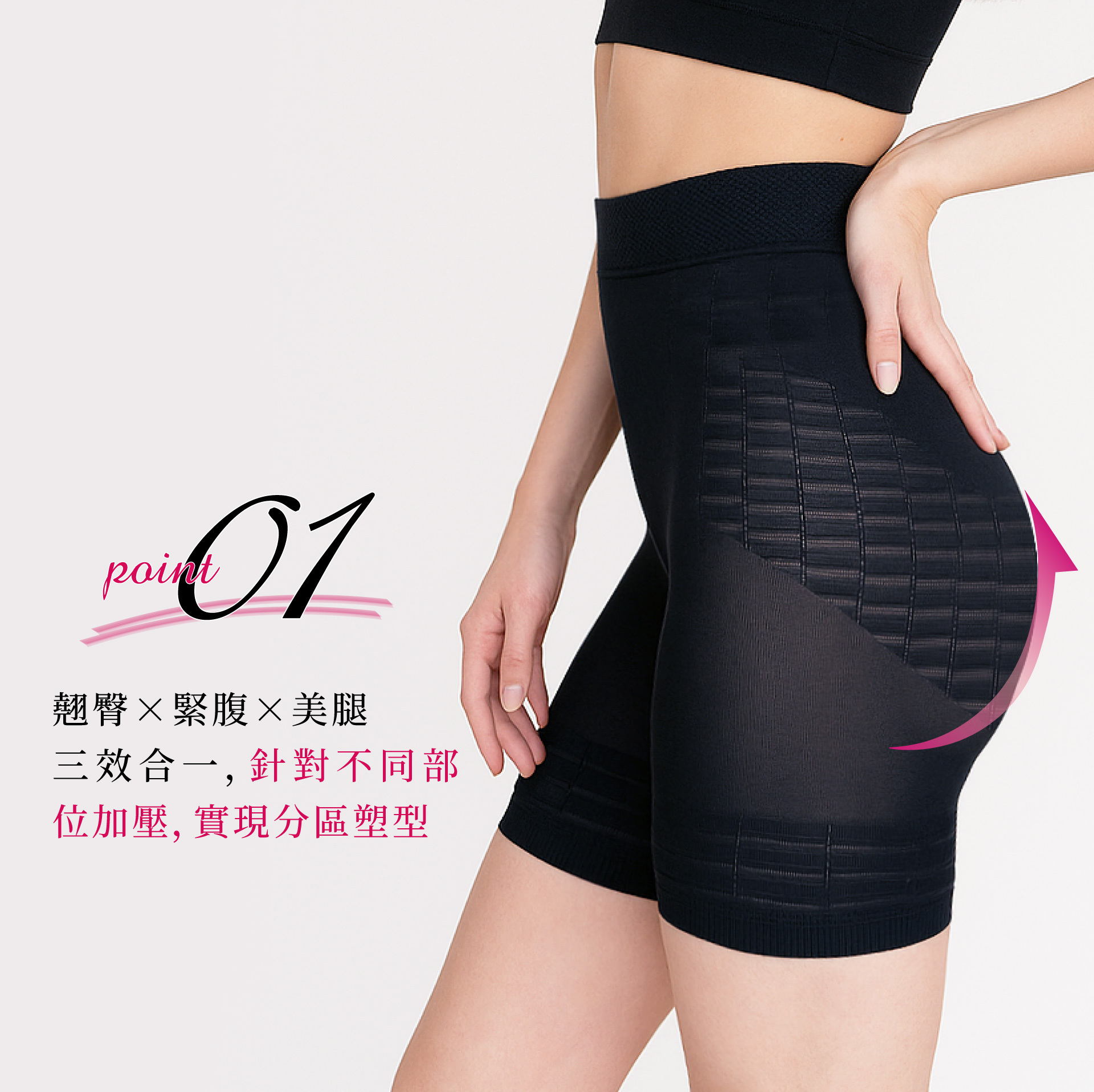 | 產品特色 | 點點視覺腰頭設計,拉高腰線修飾比例!腹部X後腰網格加壓,集中平整凸腹贅肉!臀下網格托提設計,強效支撐不外擴,塑出飽滿翹臀。大腿外側環狀彈力織法,收緊線條、修出筆直美腿! |