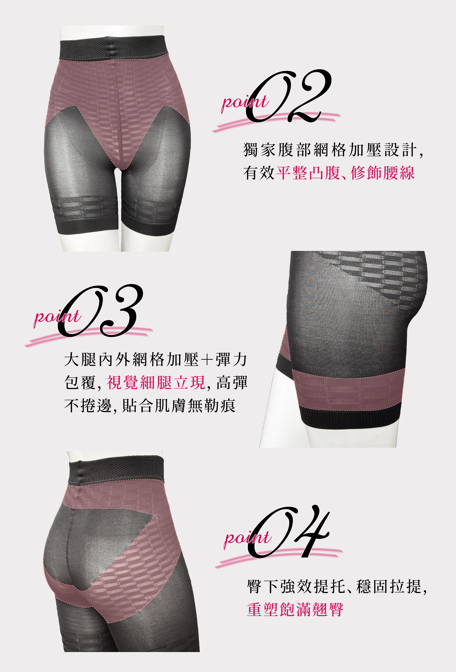 ✔ 大腿內外網格加壓+彈力包覆,視覺細腿立現