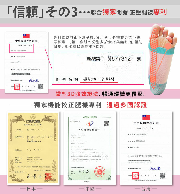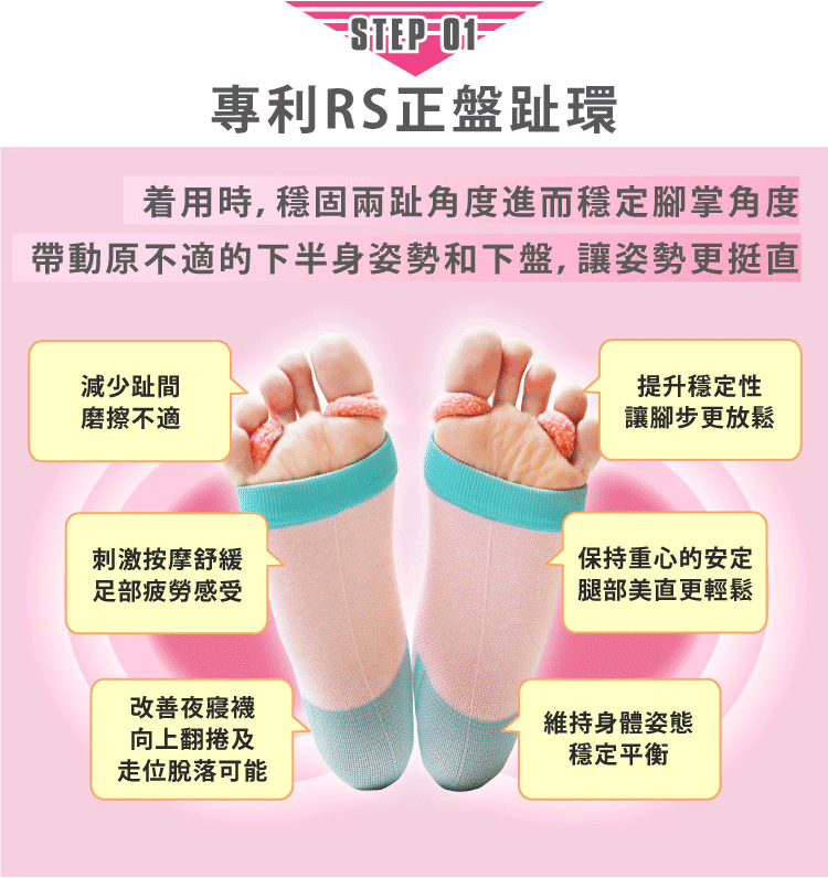 ✔ 日本專利「RS正盤趾環」補正重心、紓緩腳足