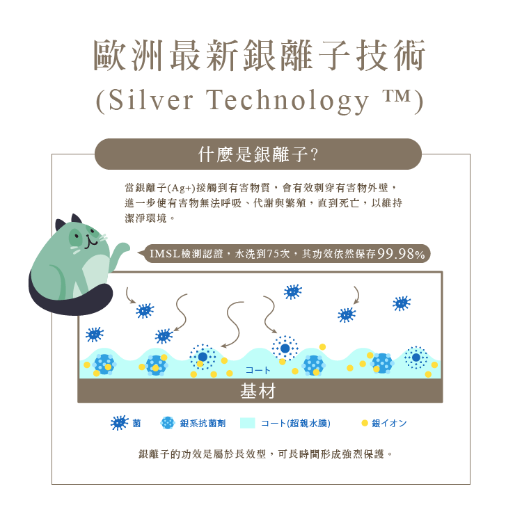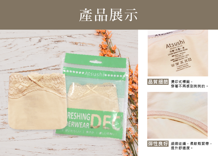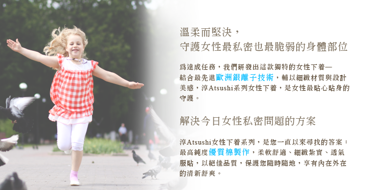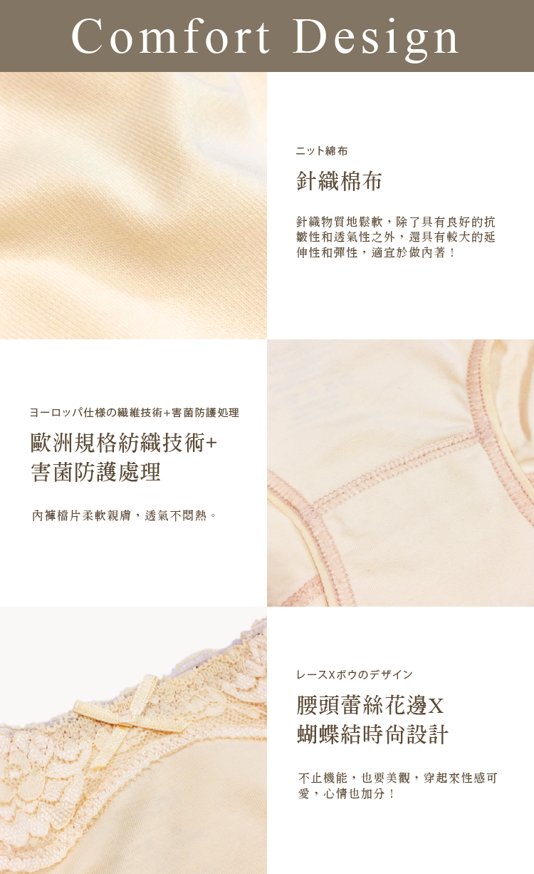 | 產品特色 | 歐規紡織技術+抗菌處理,遠離私秘困擾,獨特銀離子抗菌配方(anti-bacteria™)包覆整件褲體,有效防止細菌孳生,保健私密處、減少異味或搔癢,搭配天然有機棉,5%Spandex纖維,彈性佳,降低皮膚敏感,透氣又親膚。 |
